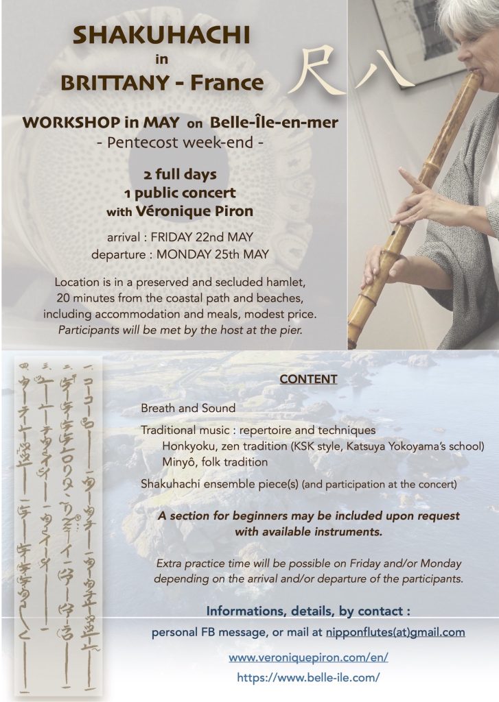 Participants must bring a shakuhachi of standard length (1.8 shaku, basic pitch D).